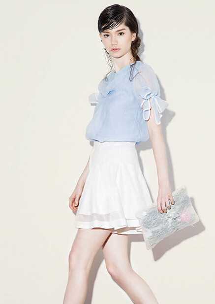 腰部有赘肉的MM不妨选择一条高腰裙,与雪纺衫一起束起来,马上把腰间拉长了,十分精神。