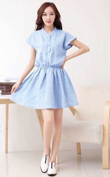 胖人夏天穿衣搭配推荐7、棉麻收腰连衣短裙