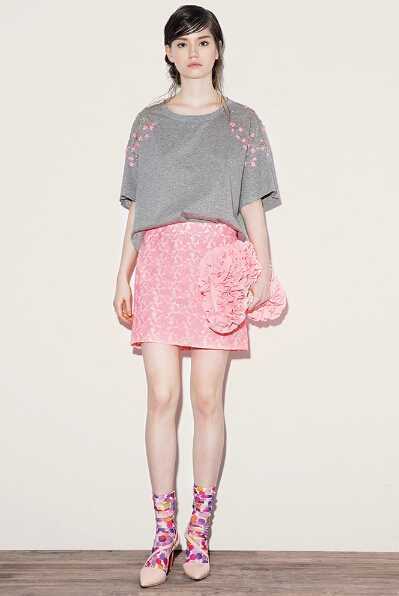 胖人夏天穿衣搭配推荐2、灰色宽松短袖T恤+粉色短裙
