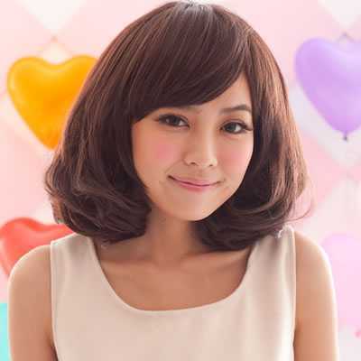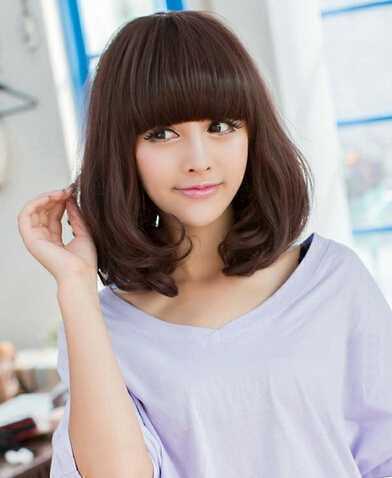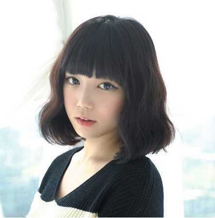 头发少适合什么发型2、齐刘海卷发尾及肩中长短发