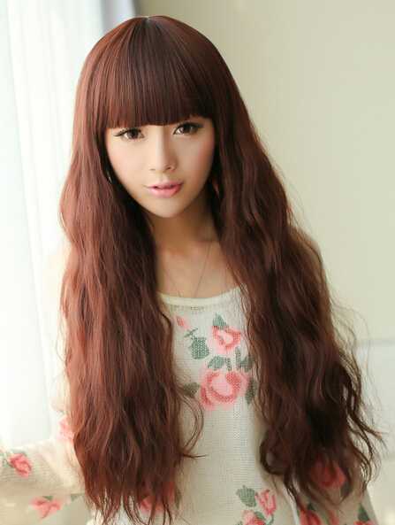 小编特别建议头发少的MM在处理刘海上应该“能齐不碎”,因为过于碎的刘海会使你的头发看起来更稀疏单薄,同时这款蓬感十足的波浪长发十分容易打理,轻松塑造完美头型。