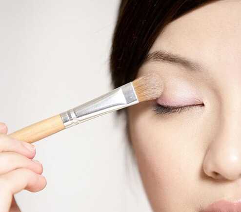 step 2:用淡色的眼影在眼窝上打底,再用稍暗色系的眼影沿着睫毛根部开始描画,打造出由下至上的渐变感,让层次感更强烈。