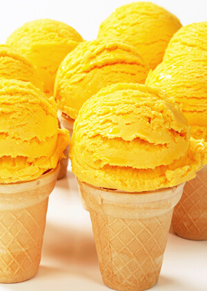 在做好的冰淇淋里加入菠萝粒,吃的时候味道更好。