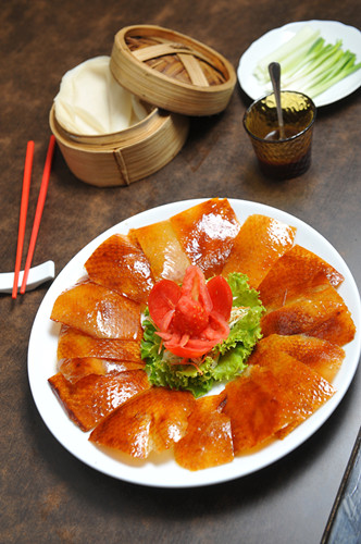 美味的北京烤鸭就做好了,试一下,哗!!真的很好吃哦!