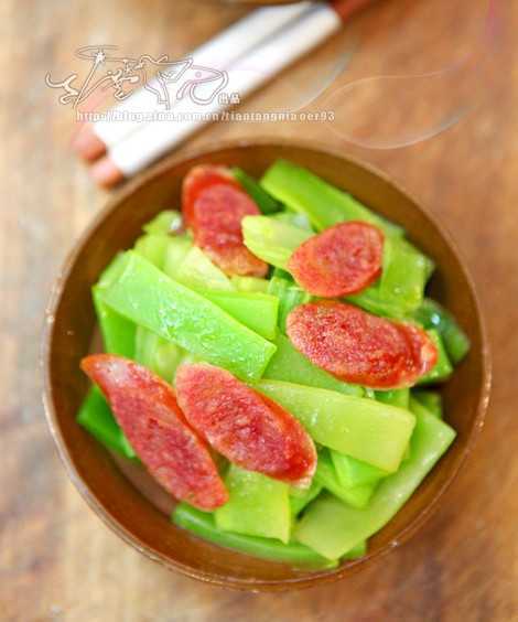 主材料:广式香肠、莴笋、独蒜