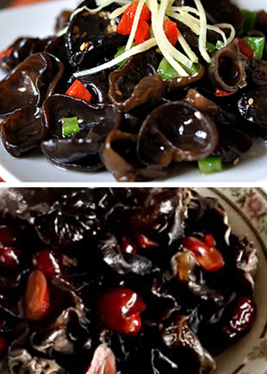 做法:把两种木耳洗干净后,用清水浸泡透后,切成条,将红枣洗干净剥开两半,姜葱切成丝,在锅里放油烧热,把姜葱爆香后,再把两种木耳放进锅里炒几下,再加入红枣煸炒,加入适量水煮至收汁再盐调味即可出锅了。