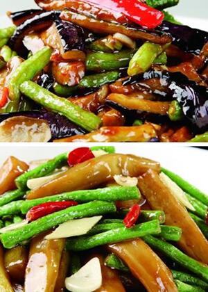 在锅里放油烧热,爆香蒜,然后放入红辣椒炒两分钟出香味,然后放入茄子和豆角,加入蚝油和生抽快速翻炒至入味,最后加入蒸鱼豉油即可出锅。