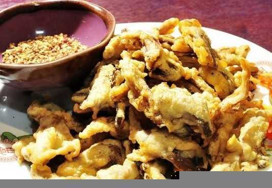 4、蘑菇炸好后,捞出沥干油,撒上孜然即可食用,酥脆的炸蘑菇就做好了。