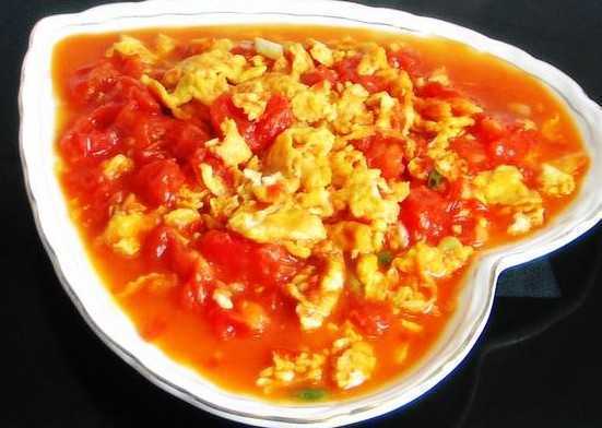 做法:把番茄洗干净,用叉子叉住放在火上烤至表面裂开,把皮撕开,切成块,葱切碎,把鸡蛋打在碗里,加入料酒和少许清水拌匀,在锅里放油烧热,倒入鸡蛋炒散,装盘备用,再放入油到锅里烧热,放我为葱和番茄炒至出汁,然后放入番茄沙司和糖炒匀,再放入鸡蛋番茄,番茄炒蛋即可出锅。