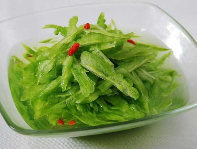 做法:把苦瓜洗干净,剖开两半,去掉中间的瓤,再切成薄片,在锅中煮开水,放入苦瓜焯一下,捞出过冷水,沥干水,然后加入盐和味精拌匀,在锅里放油烧热,然后放入辣椒充分受热,然后关火,待油凉一点,再倒在苦瓜上拌匀,凉拌苦瓜就可以吃了。