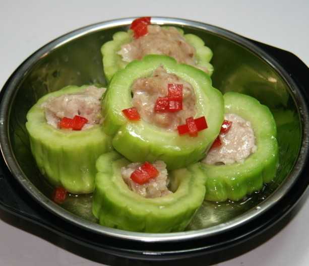 做法:把苦瓜洗干净切段,去掉瓤,把银耳用清水泡发,洗干净焯一下水捞出,锅里煮开水,放入少许盐,再放入苦瓜焯一下,捞出过冷水,把陈丹皮放入苦瓜芯里,酿好摆在碗里,淋上酱油、盐、香油和糖,把银耳摆在苦瓜旁边即可,美味的凉拌酿苦瓜就搞定了。