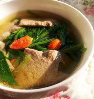 菠菜汤的做法大全二:猪肝枸杞菠菜汤