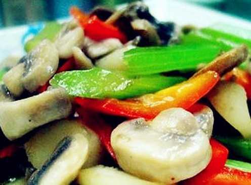 做法:把蘑菇、马蹄、青椒洗干净切片,西芹洗干净切段,姜切片,蒜切末,在锅里放油烧热,把姜蒜爆香,放入蘑菇翻炒至软,然后放入西芹、马蹄和青椒翻炒至断生,最后,加盐和鸡精调味即可,西芹炒蘑菇就可以出锅了。