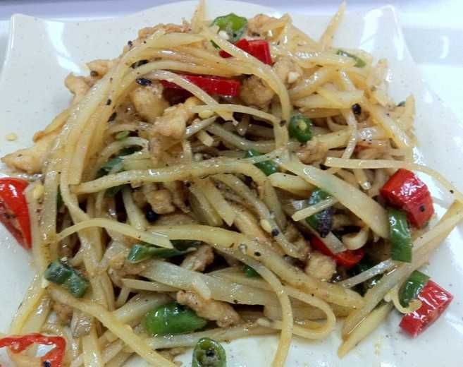 做法:把马铃薯去皮洗干净,切成丝,放入水中浸泡,以防变色,把青红椒切丝备用,把猪肉洗干净切丝,加入料酒、山芋粉、料酒和盐拌匀腌二十分钟,在锅里放油烧热,放入猪肉翻炒至熟,装盘备用,再放油锅里烧热,放入青红椒翻炒出香味,装盘备用,再烧热锅,放入适量油,放入马铃薯丝翻炒,倒入少许醋炒至七成熟,再倒入青红椒和猪肉翻炒至熟即可,美味的土豆炒肉丝就搞定了。