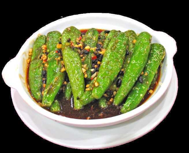 2、在锅里放油烧热,放入青椒煎至两面起皱发黄,然后装盘备用。