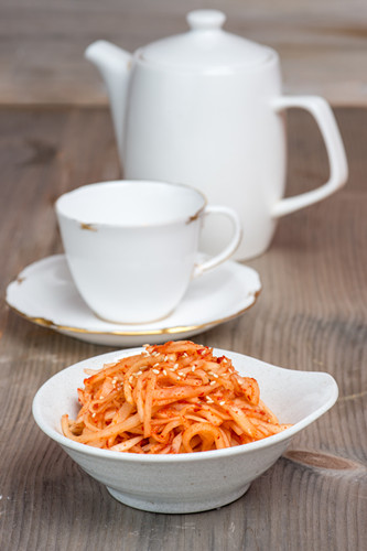 一定要趁热将水倒在萝卜里,这样可保持萝卜的清脆。
