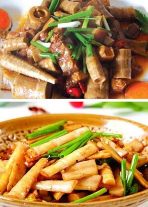 2、靠近笋尖部的地方宜顺切,下部宜横切,这样烹制时不但易熟烂,而且更易入味。