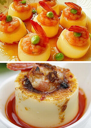 做法:将鲜虾洗净去壳挑去肠线,加入料酒和盐腌制15分钟左右,将日本豆腐从包装袋里轻轻取出,切成一厘米长的段,将日本豆腐一块一块摆在盘里,在各块豆腐上面放一只虾,再撒上少少盐,在锅里加水烧开后,将豆腐放进锅里蒸五六分钟拿出来,在虾上面各摆上一粒青豆装饰,将豆腐盘里的水倒在另一个碗里,加入淀粉搅拌均匀,倒进锅里加入生抽一起煮成芡汁后淋在豆腐虾仁上就可以吃啦,嫩滑的口感和虾仁的鲜香味真是好好吃哦!