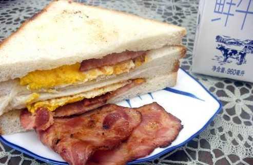做法:把土司切去四边,把鸡蛋煎成荷包蛋,培根切成薄片,放入平底锅里略煎一下出油,装盘备用,取一片土司,涂上千岛酱,然后放入鸡蛋和培根,再取另一片土司,涂上一层千岛酱,然后盖在培根上面,然后对角切成两个三角形即可,美味的培根鸡蛋三明治就做好了。