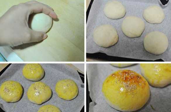做法:把一些面粉加入糖、酵母和水和成面,再用一些面粉加入奶粉、糖、牛油和水和成面,然后和之前和好的面混合在一起揉成面团放一边发酵至两倍大,把发酵好的面团分成几个小面团,搓圆放入烤盘里,再发酵至原来的两倍大,然后把鸡蛋打散,涂在面团上,再撒上芝麻,然后放入烤箱里烤至金黄色,取出放凉,把牛肉剁成泥,番茄切片,洋葱切碎,在牛肉泥里加入洋葱、盐、胡椒粉、味精搅拌均匀,再放入锅里煎成牛肉饼,把烤好的面包横切开两半,在里面夹入牛肉饼和番茄即可,美味的牛肉汉堡包就做好了。