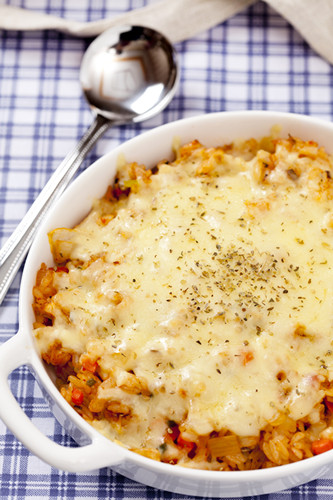 做法:把黄瓜去皮洗干净,再切丁,香肠切丁,洋葱洗干净切丁,把米饭放入电饭锅里,倒入黄瓜、洋葱和香肠拌匀,再放入马苏里拉奶酪,然后盖上盖子,按下煮饭键,煮十五分钟,待跳键后,再焗几分钟即可,美味的电饭煲芝士焗饭就做好了。
