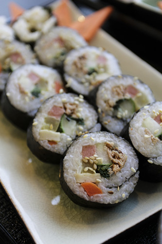 原料:黄瓜,胡萝卜,牛肉,米饭,寿司片