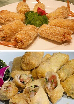6、锅里放油烧热,放入鲜虾卷,小火炸至金黄色,装盘即可。