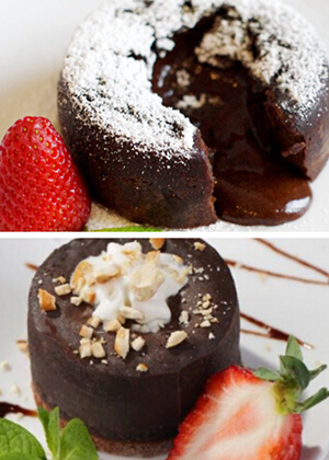 厨房小常识:熔岩蛋糕,烤的时候越久,中间可流动的馅心越少,如果没有趁热食用,馅心也会凝固。