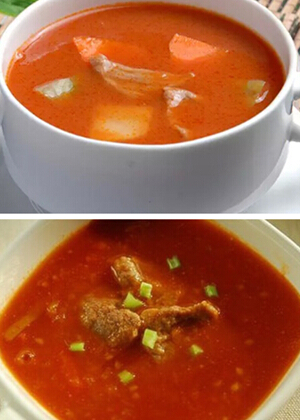 番茄浓汤滑牛肉的汤汁香浓可口,每一片牛肉都裹满番茄汁,看到就直流口水,还等什么,快动手吧!