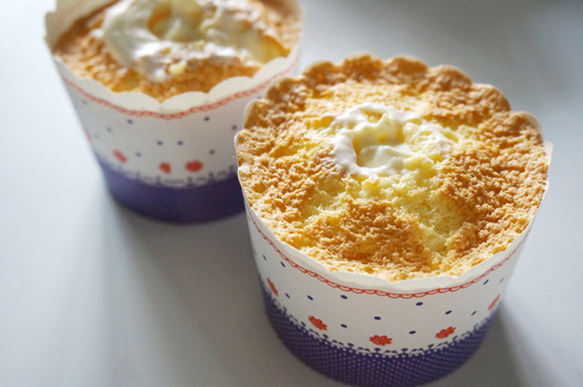 5、烤制蛋糕的时候可以打发奶油,等到蛋糕烤好后,用泡芙裱花嘴注入就完成啦。