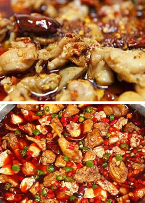 7.锅中放入油,下花椒、麻椒、干辣椒炸香,将热油到入碗中即可。