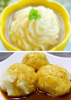 2、土豆压成泥状,加入适量嘉豪鸡汁。