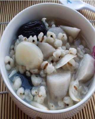 材料:山药90克,百合40克,大枣10枚,薏苡仁30克及大米适量