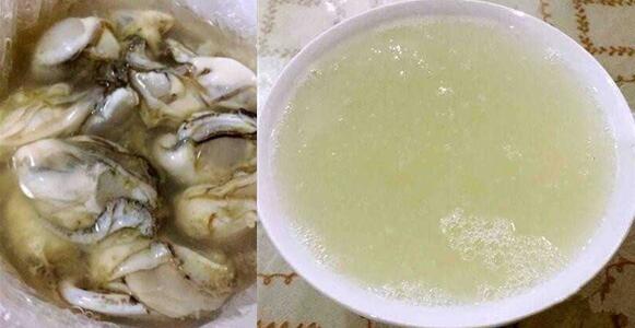 2、用原汁原味的生蚝汤洗净生蚝,再将这重要的原汤澄清备用。