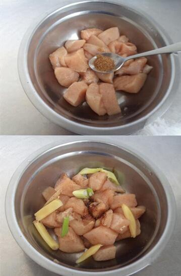 2、把鸡胸肉洗干净,切成大小均匀的小块。