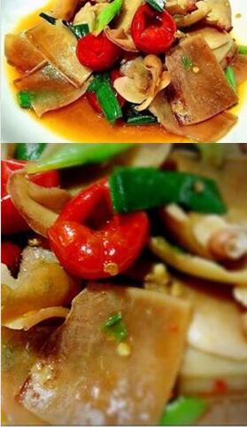 辅料:泡红椒100克、泡姜100克、蒜苗2根、盐1/2茶匙、白醋4茶匙、料酒2茶匙、醋1/2茶匙