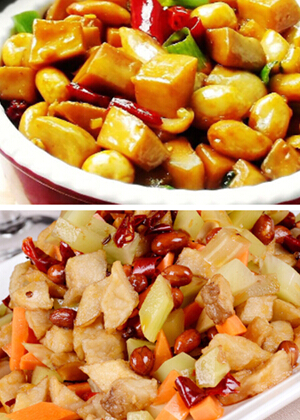 原料:鱿鱼,杏鲍菇,荷兰豆,花生