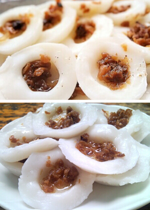 做法:将大米淘洗干净浸泡一小时,然后捞出来沥干水份,磨成米浆,将小陶钵洗干净擦干水份,涂上一层油,把米浆放入陶钵里,再放进锅里蒸熟,再把粿胚取出来,将瘦肉剁成末,蒜剁成末,放在碗里加盐搅拌均匀,再把肉馅放在粿胚里,加上辣酱或甜酱就可以吃了,肉馅也可按个人口味自己调配。