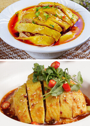 把鸡洗干净,把姜切片,蒜切碎,葱切葱花,在锅里放油烧热,把花生炒香装盘碾成碎末,在锅里加水烧开,把葱、姜、盐、花椒和料酒放进锅里,再把整鸡放进锅里煮至断生,迅速捞起放进冷汤里浸泡冷却,这样可以让鸡肉保持嫩滑。