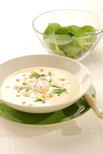 3、放入嫩豆花拌匀,炖入味,再加入盐和鸡精调味,用水淀粉勾芡即可。