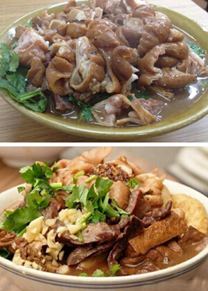 主料:猪肚1个,猪大肠1000克,猪肺1个,小麦面粉500克。