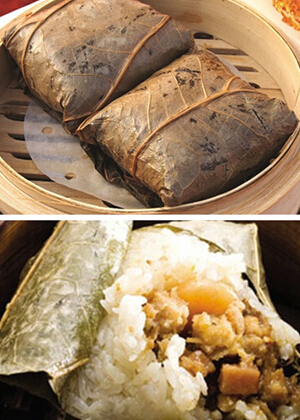 主料:荷叶6张,糯米480克,鸡腿200克。