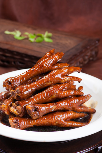 12.吃之前,将调好的料汁浇在鸡爪上就完成啦。