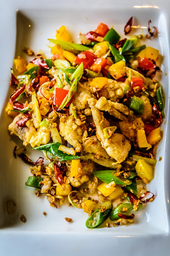 7、撒胡椒粉、葱段翻炒均匀,出锅装盘即可享用。