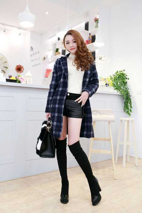 优雅的格子超款大衣,搭配小性感蕾丝打底衫+酷酷的皮短裤,搭配过膝长靴,展现超长美腿,再配上帅气手拿欧美范拼接包包,如此混搭搭配让你瞬间蜕变成优雅潮流的时尚达人。