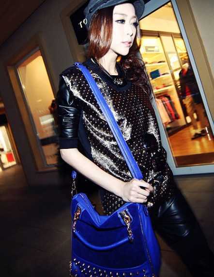铆钉款宝蓝色包包