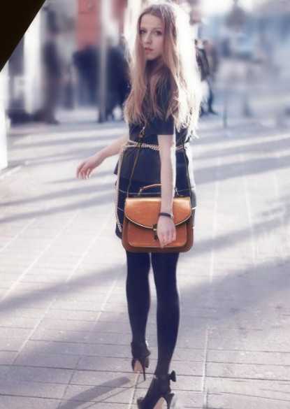 春季棕色斜挎包,复古撞色的款式,是今年大热的款式,搭配优雅格子连衣裙,百搭又显优雅,加上蝴蝶结高跟鞋,尽展出高挑好身材。