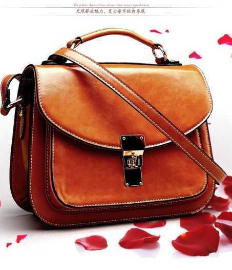 春季棕色斜挎包,精美带锁扣设计,很实用显时尚。