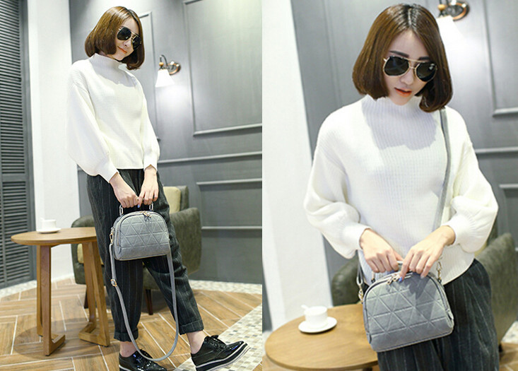 【秋季包包搭配03】新款磨砂的斜挎包精致小巧,可手提可斜跨的款式更是令热大爱,搭配着纯白的毛衣以及窄脚的哈伦裤更显独特的街头时尚感,一双厚底的亮皮鞋更是瞬间就提高了身材,让造型更为出彩。