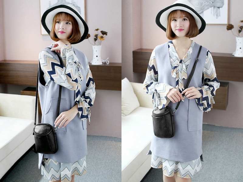 搭配2:两件套连衣裙+迷你斜挎包